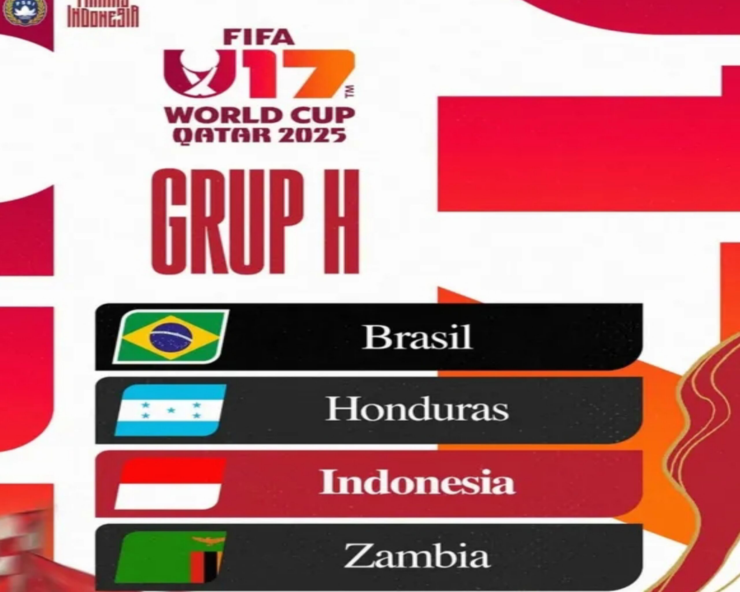 Kabar menggembirakan sekaligus menantang datang bagi Indonesia. Timnas U-17 Indonesia tergabung di Grup H bersama raksasa sepak bola Brasil, serta dua tim kuat dari benua Amerika dan Afrika, yakni Honduras dan Zambia.