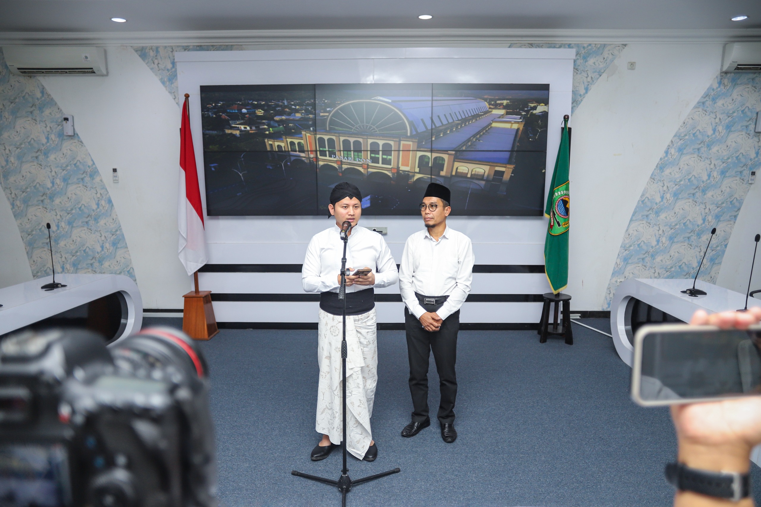Bupati Trenggalek Mochamad Nur Arifin (Gus Ipin) mengumumkan pengurangan retribusi pasar di Gedung Smart Center, Trenggalek, Selasa (12/8/2025).